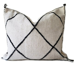 Ethically crafted from natural wool, fibers and dyes, each of these woven pillow covers represents days of work and generations of skill passed from mother to daughter. Just outside of Marrakech, a remarkable group of women transform wool and the natural fibers of desert agave into beautiful silken thread using time-honored methods. The hand-spun thread is then masterfully woven on family looms and embroidered with traditional motifs.