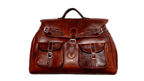 Leather Duffle Bag - Hermes Design - Chocolate Brown