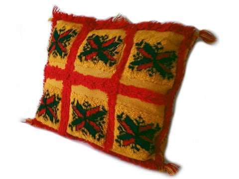 This Cushion is adorned with signature Tassel tufts, and traditionally designed woven inlay strips intended to bestow protection on the wearer.