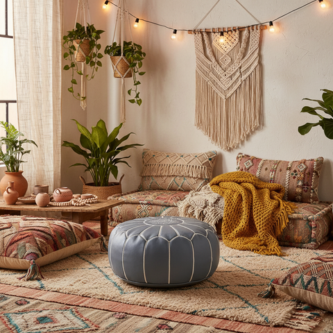 - Style: Ethically Handmade in Morocco Leather Pouf